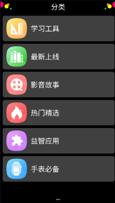 2、在分类版块中,提供了学习工具、最新上线、影音故事、热门精选以及手表必备等多个内容分类。