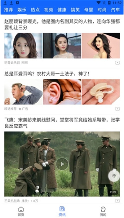3、点击资讯板块,可以浏览娱乐、视频、热点、搞笑等多种分类资源;