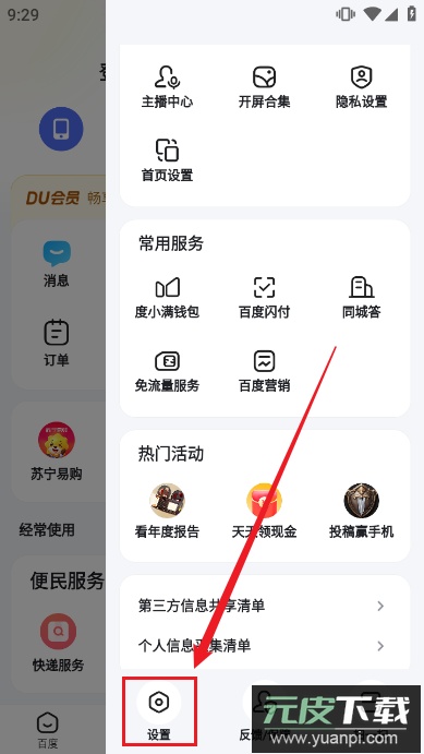 3、在弹出的功能界面里,点击最下方的设置选项。