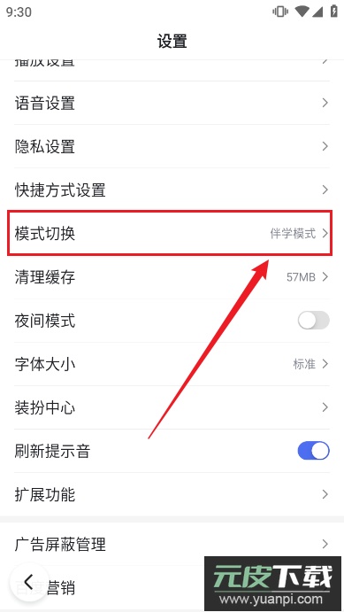 4、最后在设置页面找到模式切换选项,点击确认切换到伴学模式就完成设置了。