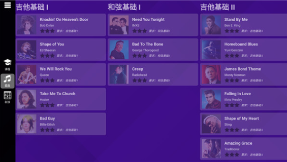 点击歌曲,内置海量的歌曲可以让用户用吉他进行弹奏。