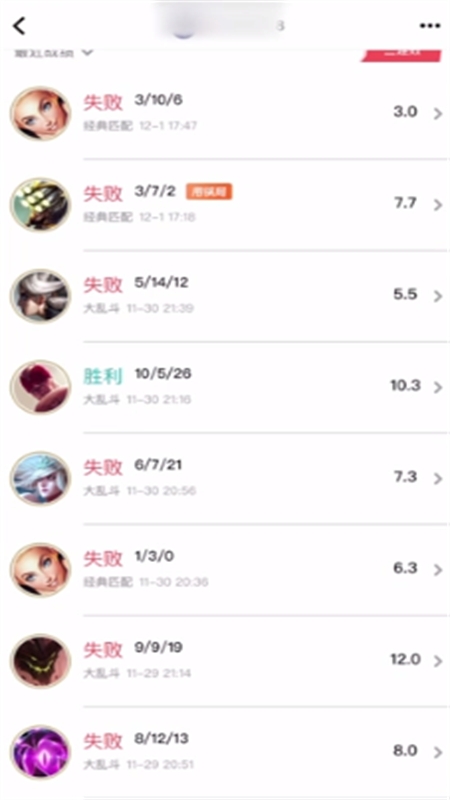 继续向上滑动屏幕,可以查看该好友最近的比赛战绩记录。