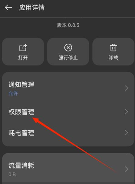 2、进入应用详情页面后,找到并点击权限管理选项;