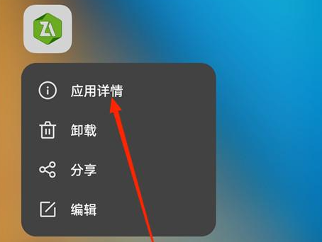1、首先长按手机桌面上的软件图标,在弹出的菜单中选择应用详情;