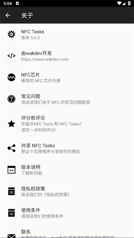 5、如需了解更多NFC Tasks的详细信息,可直接点击关于选项,查看更全面的软件介绍。