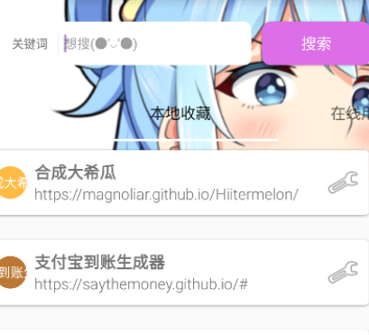 3、点击收藏可以进入软件选择功能,也能在线搜索关键词查找资源。