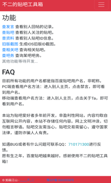 多功能集成:该工具箱集成了吧务状态查询、ID发言记录查看、ID关注贴吧列表检索及资料查询等多种核心功能;还提供如IOS旧版截图生成等特色服务,以应对用户的特殊使用场景。