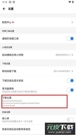 3、在设置列表里找到下载位置选项,点击进入就能查看安装包的存储位置;