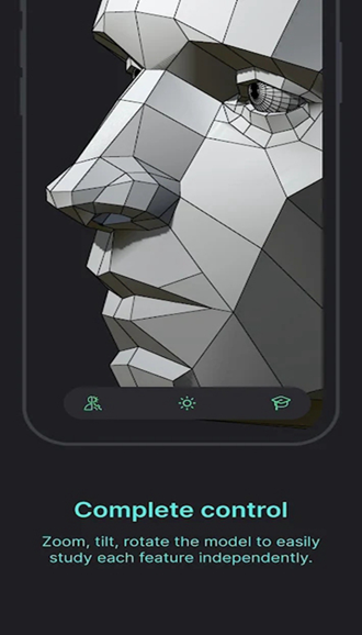 逼真的渲染与多角度观察:该应用能够生成高度真实的人脸渲染效果,辅助艺术创作者理解光影在肖像上的作用;用户可从多个方位查看三维模型,获得全面的视觉参考,提升绘画的准确度与真实感。