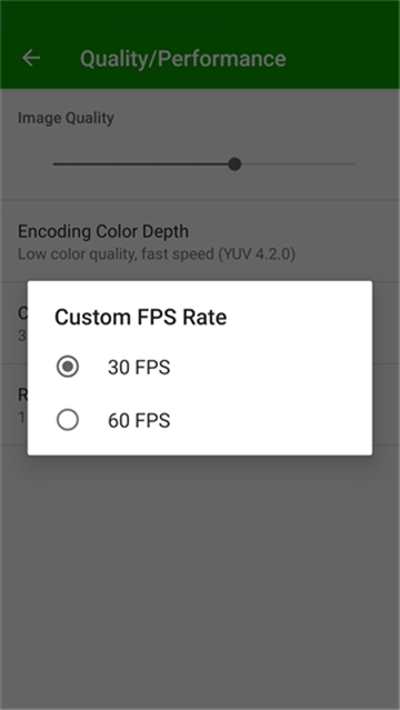进入quality/performance项目可修改画质与性能设置;用户能依据设备情况切换帧率,软件提供30帧与60帧两种选项。