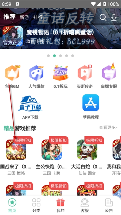 2、进入应用首页,浏览并选择自己感兴趣的游戏点击进入。