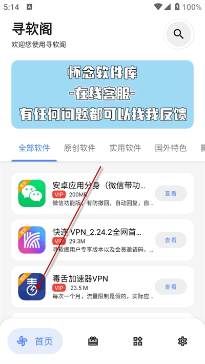首先需要在本站下载并安装寻软阁软件库应用程序。