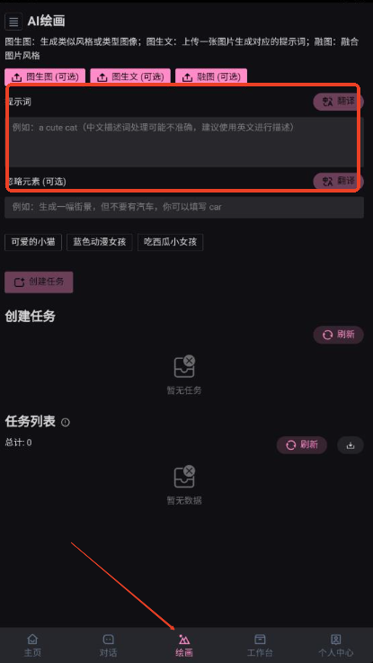 例如使用AI绘画功能时,设定好提示词并创建任务,系统便能迅速生成符合预期的绘画作品;