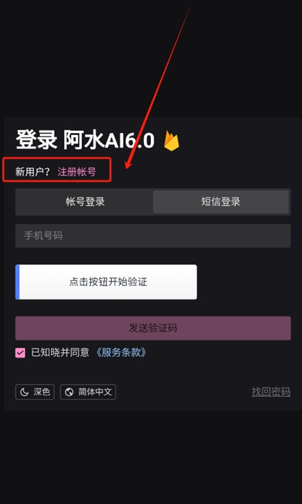 尚未拥有账号的用户可点击上方注册按钮,支持通过邮箱或手机号完成注册;