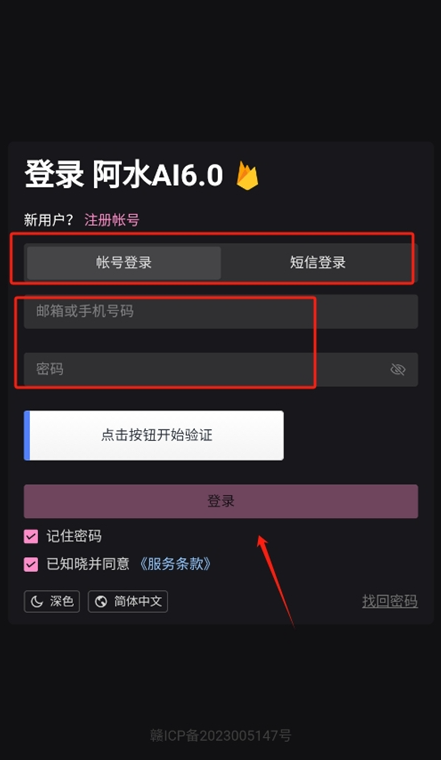 登录支持账号或短信验证方式,若选择账号登录,需输入手机号与密码,完成验证后即可进入;