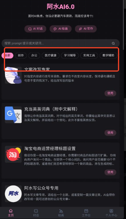 阿水AI6.0模型官方最新版本是一款基于强大人工智能技术的智能工具,它集成了AI对话、AI绘画、AI写作以及搜索提示词等多种核心功能,该模型能够广泛应用于内容创作、日常办公、健康咨询、学习辅导与教学支持等多个场景,致力于为用户快速解决各类问题,并通过免费服务满足生活与工作中的多样化需求。