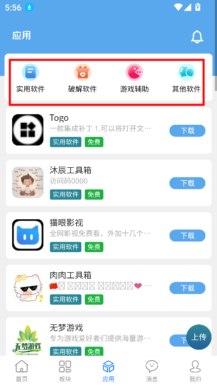 在应用分区中,设有实用软件、破解工具、游戏辅助及其他软件等分类,方便按需查找。