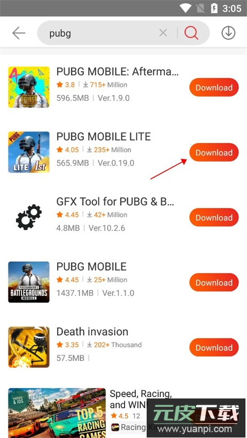 2、在结果列表中找到对应游戏,点击右侧的download下载按钮。