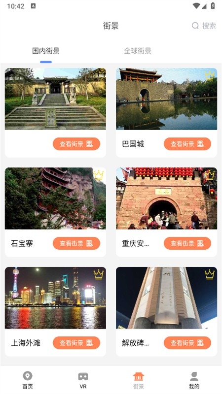 5、街景功能不仅支持国内场景,也可观看全球街景;点击右上角搜索按钮,可查找喜欢的街景进行观赏。