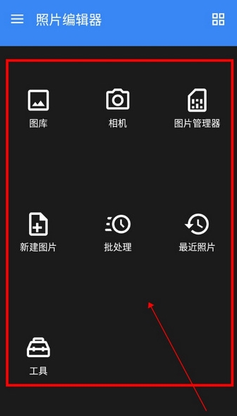 1.安装并启动应用后,在主页面可以选择点击【相机】直接拍摄,或通过【图库】导入设备中已有的照片进行编辑。