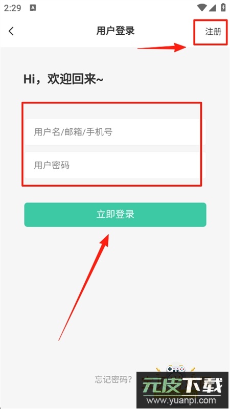 3、跳转至登录界面后,输入用户名、邮箱或手机号以及对应密码完成登录;若未拥有账号则点击注册选项;