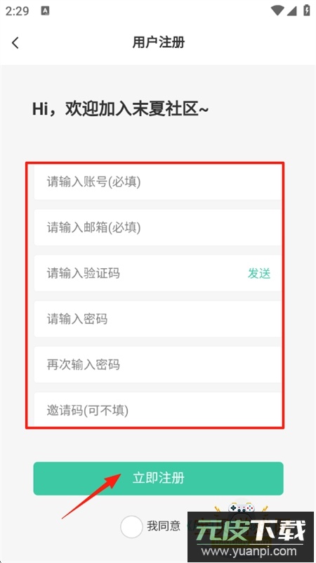 4、在注册页面填写账号名称、邮箱地址、验证码等必要信息,最后点击立即注册即可完成。