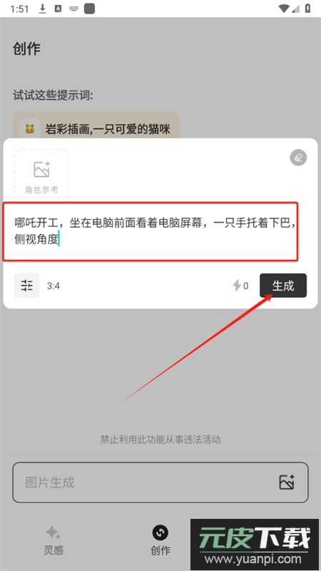 5、进入创作页面,输入描述性的提示词,系统便会据此生成对应的图像。