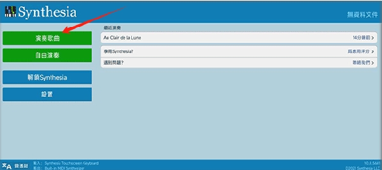 安装应用程序后,进入主界面,点击开始演奏歌曲的选项。