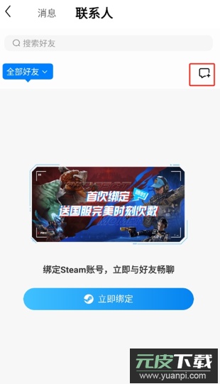 点击立即绑定steam账号绑定后好友列表会显示若未显示可点击加号按钮