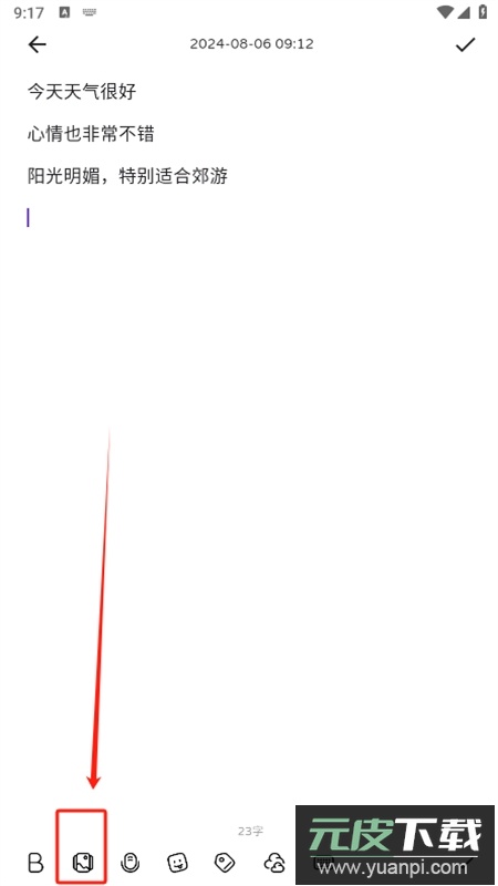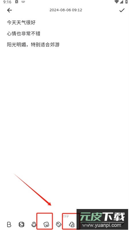 5、笑脸图标用于设置心情状态,天气图标则可选择当日天气状况。