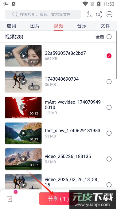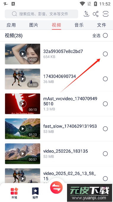 1、以下以视频文件为例介绍传输步骤,首先选择需要发送的文件;