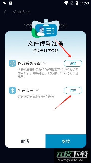3、依据传输准备提示调整系统设置,同时开启蓝牙功能;