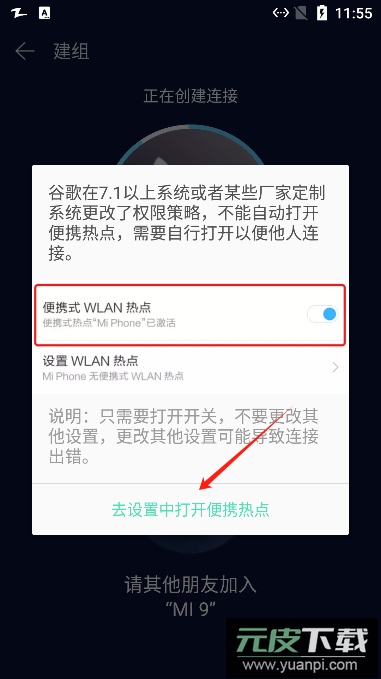 7、热点启动后即可邀请接收方用户加入传输。
