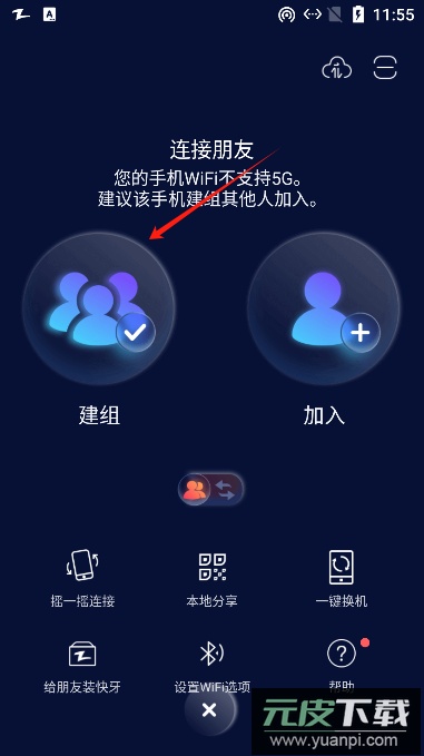 5、在文件传输页面中选择建组选项;