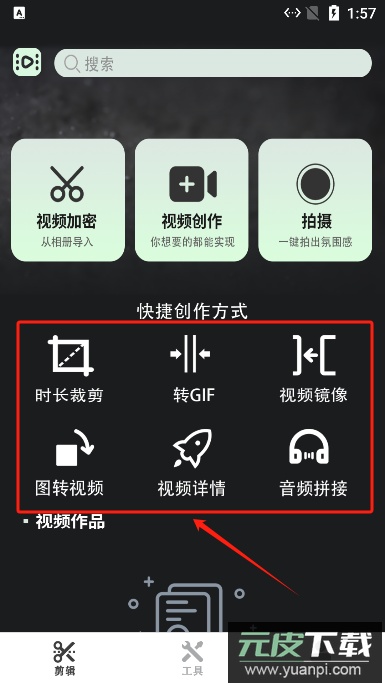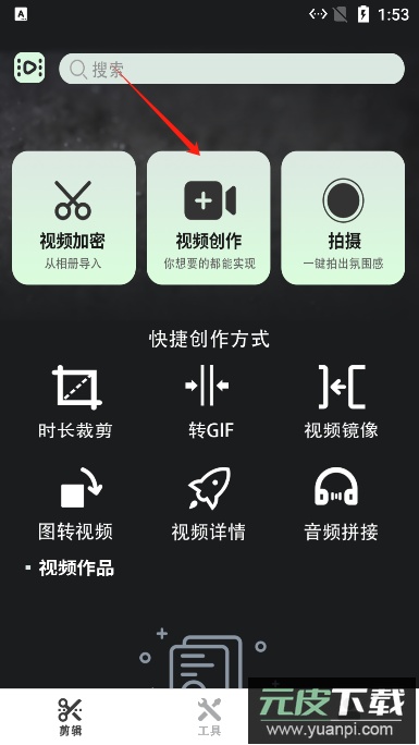 1、首先点击软件中的视频创作功能入口。