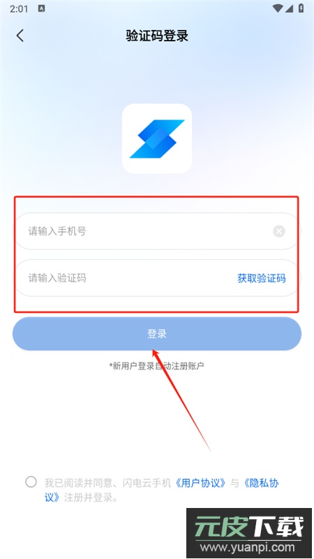 2、输入手机号与验证码,即可快速完成注册并登录。