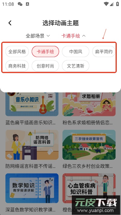 接着从提供的多种风格中选择一种,例如卡通手绘或中国风等。