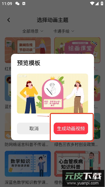 预览并确认风格模板后,点击“生成动画视频”按钮,系统便会自动创作出完整的动画视频。