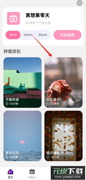 1. 软件内置丰富的冥想音乐资源,时长包括3分钟、10分钟和30分钟等多种选择,用户点击即可开始播放。