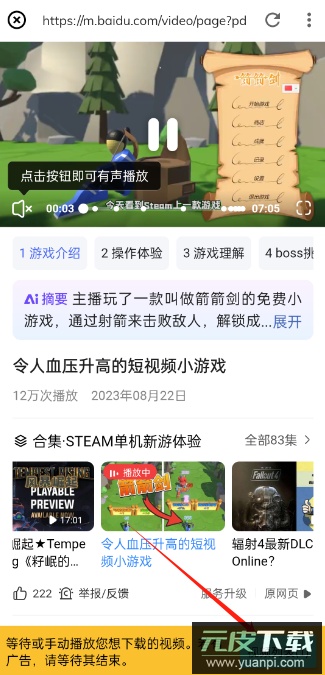 1、部分用户可能觉得操作复杂,以下将逐步演示如何下载网页视频。首先在浏览器中找到目标视频素材,例如搜索并打开一段游戏视频。
