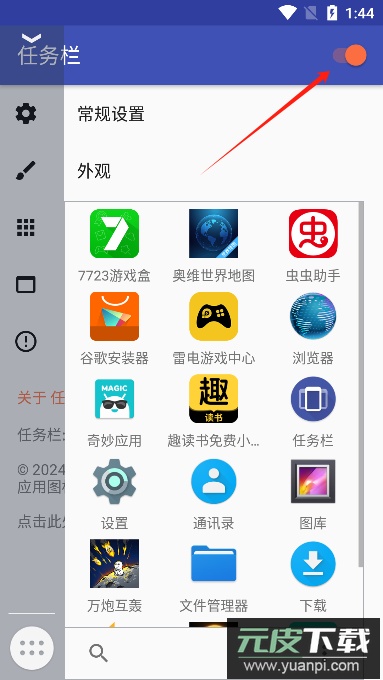 Taskbar任务栏安卓版是一款能够自定义任务栏显示状态的手机应用。该工具允许用户自由调整菜单的布局风格,提供列表与网格两种视图选项,并支持将任务栏放置在屏幕的任意位置。软件还具备丰富的外观设置功能,包括主题切换、背景颜色调整、图标包替换以及开始菜单图标的个性化定制,让用户能够打造符合个人喜好的操作界面。
