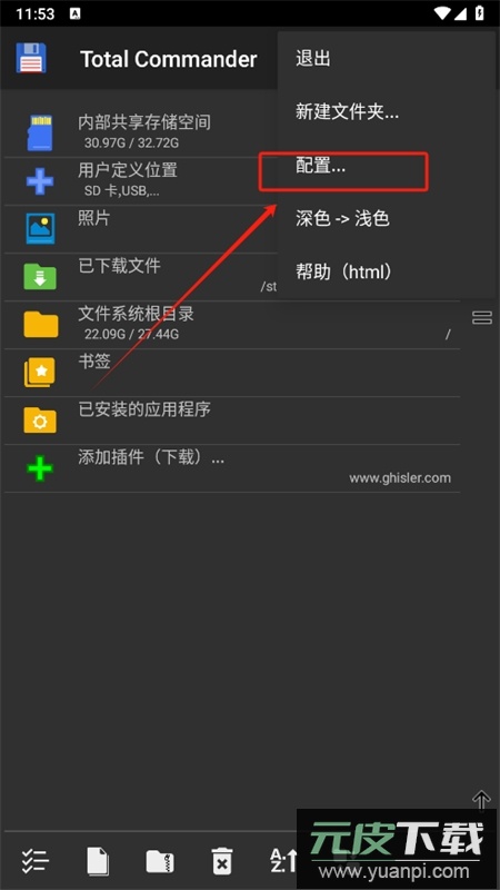 2、在弹出的菜单中选择配置项;
