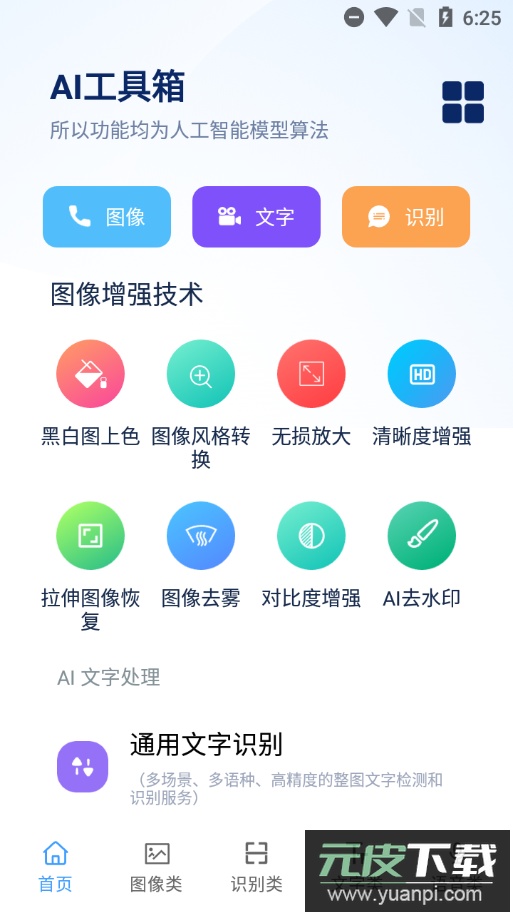 4、图像工具:提供黑白着色、锐度增强、对比度调整、色彩优化、风格转换、人像动画、背景分离、图像去雾、无损放大、拉伸恢复、魔法擦除与水印去除等处理能力。