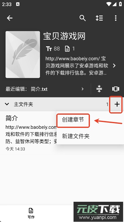 完成简介编辑后,再次点击加号即可创建全新的章节内容。