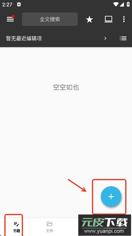启动应用程序后,用户可直接在书籍页面点击加号按钮,即可开始新的创作。