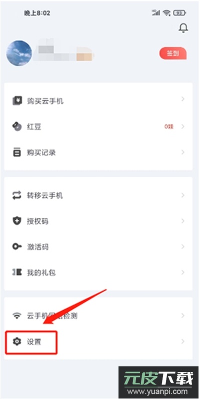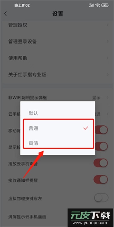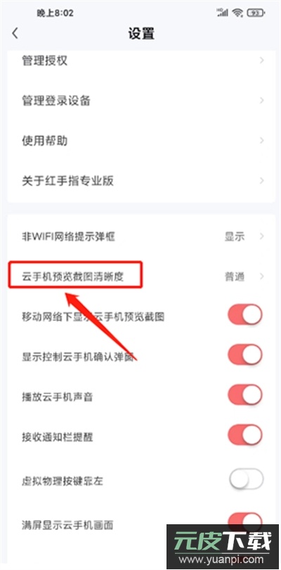 2、在设置界面中,找到并点击云手机预览截图清晰度。