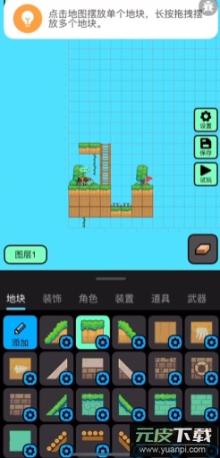 2.设计游戏元素:在创建的作品中,你可以设计地图、角色、道具等基础内容;制作地图时建议选择宽敞区域,为玩家留出充足活动空间;在编辑模式下取消地块的阻挡通行设置,使角色移动更自由。