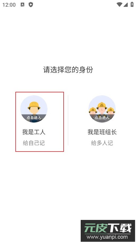 3、第一次使用会提示“请选择您的身份”,可根据自身实际情况选择,这里以选择“我是工人”为例;