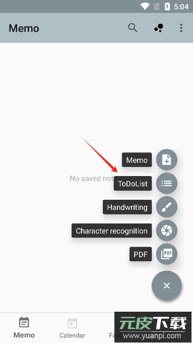 2、选择需要记录的文本类型,例如备忘录或待办事项,这里点击待办事项