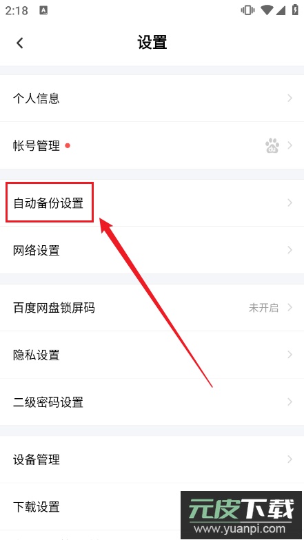 3、进入【设置】后找到【自动备份设置】;